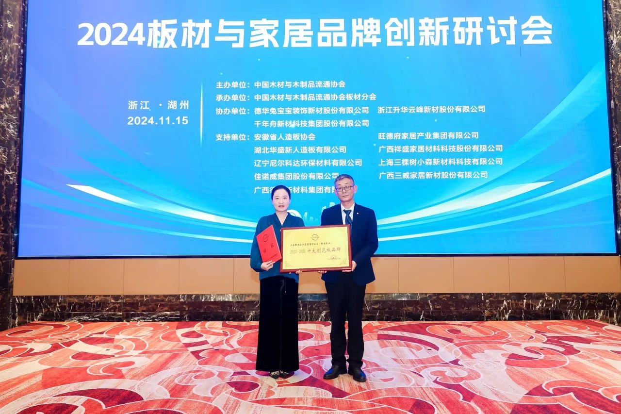 11月15日,為推動板材與家居品牌建設,打造具有國際影響力的“中國品牌”,由中國木材與木制品流通協會主辦的“2024板材與家居品牌創新研討會”在浙江湖州召開,眾多行業知名品牌匯聚一堂,共同見證這一榮耀時刻。新港集團副總裁姜婷婷受邀出席。