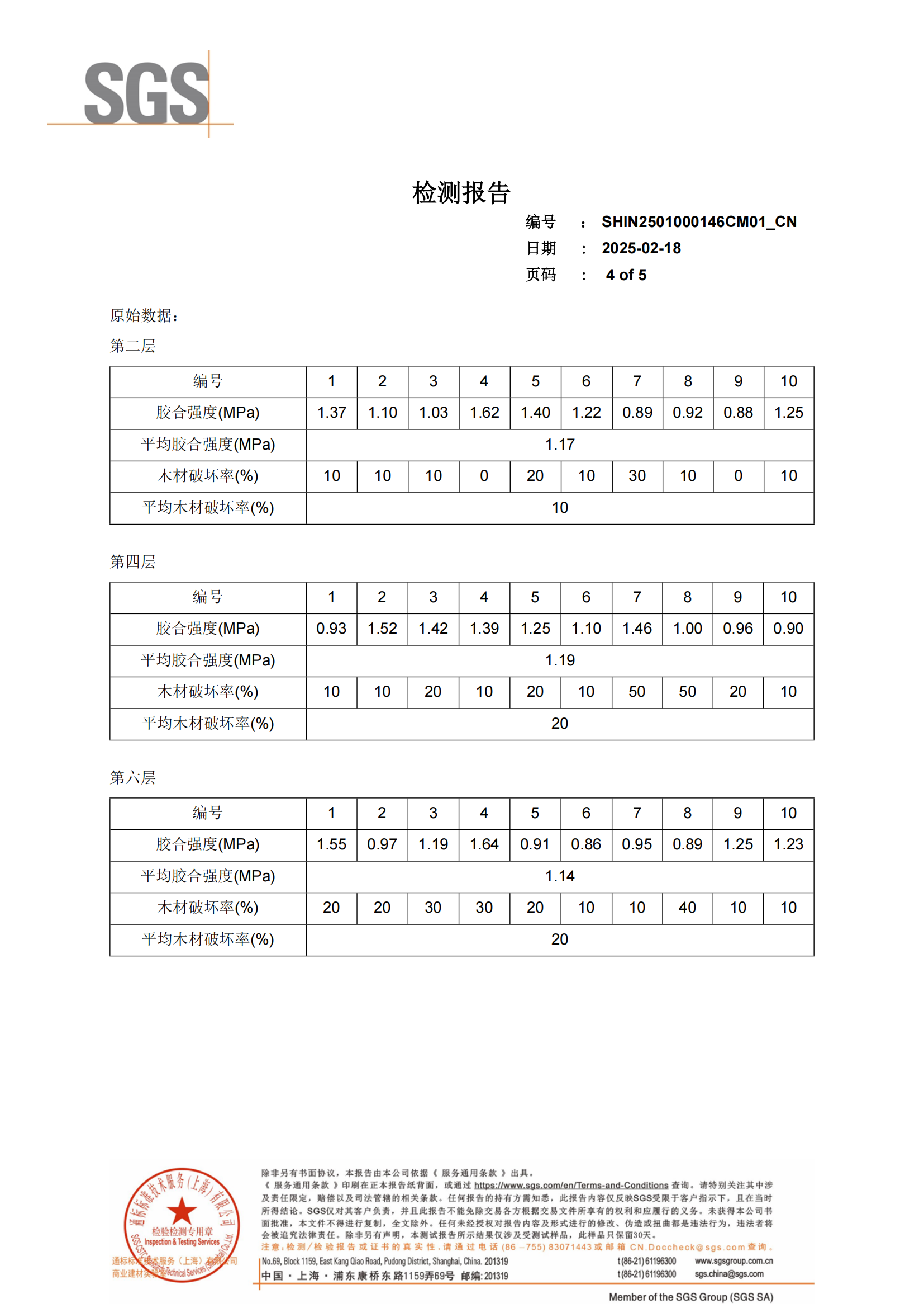 膠合強度檢測:最終測試顯示,每層膠合強度均>1.10MPa,且無分層、無開膠,結(jié)構(gòu)完整性無可挑剔。