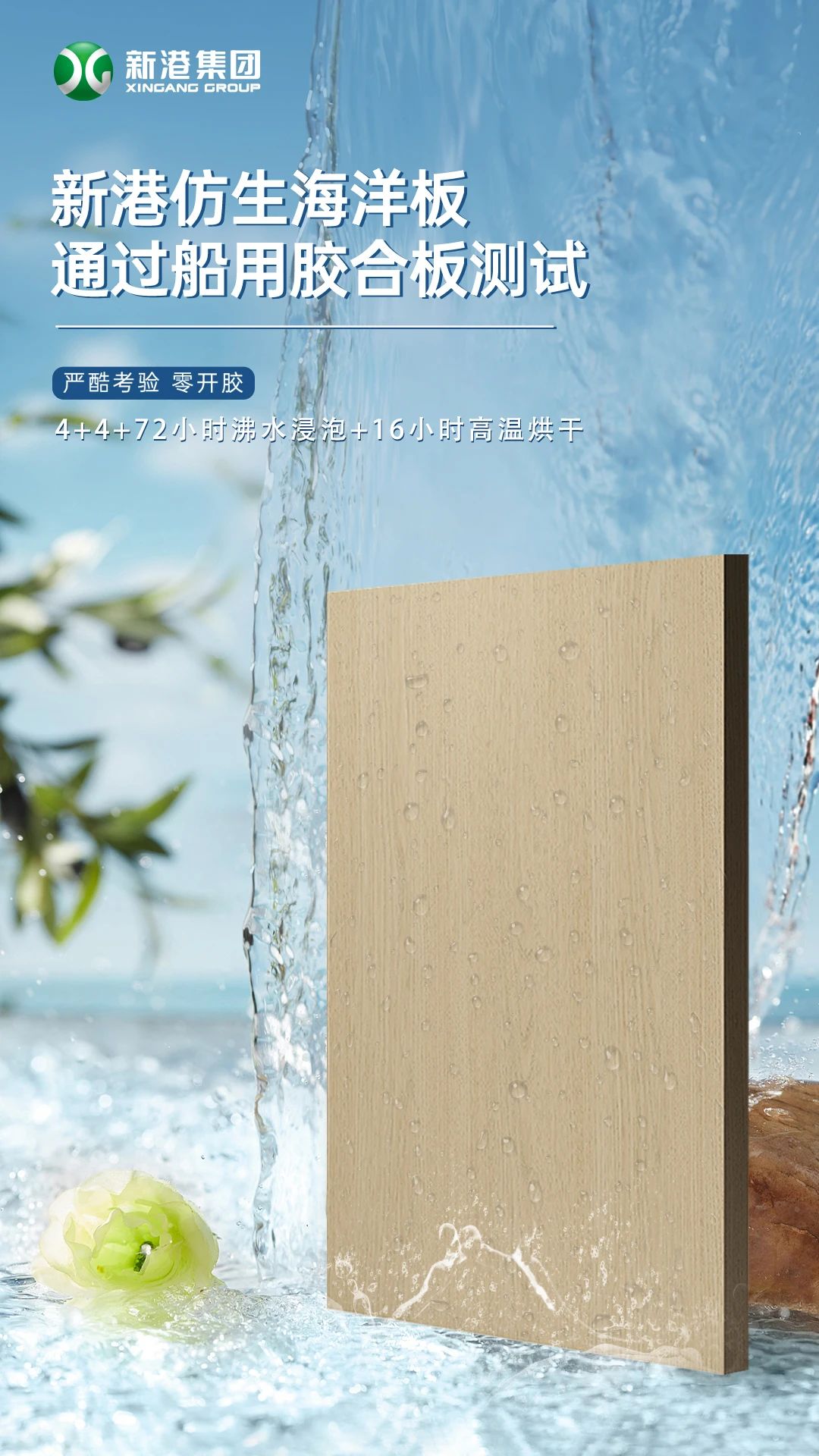 在家居板材領(lǐng)域,防水性能一直是行業(yè)痛點。新港集團最新推出的仿生海洋板,成功通過船用膠合板測試,滿足家居板材防水性和耐候性的極致要求,成為國內(nèi)少數(shù)達到該標準的板材品牌。