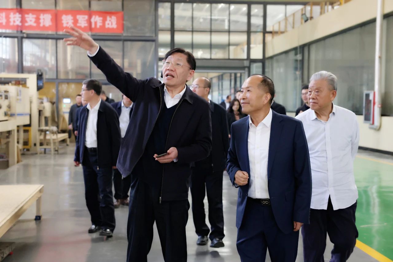 會前,各位領導專家一行實地參觀了新港集團超薄纖維板生產線,對新港集團的產品特色、智能化生產設備、創新成果等進行深入了解。