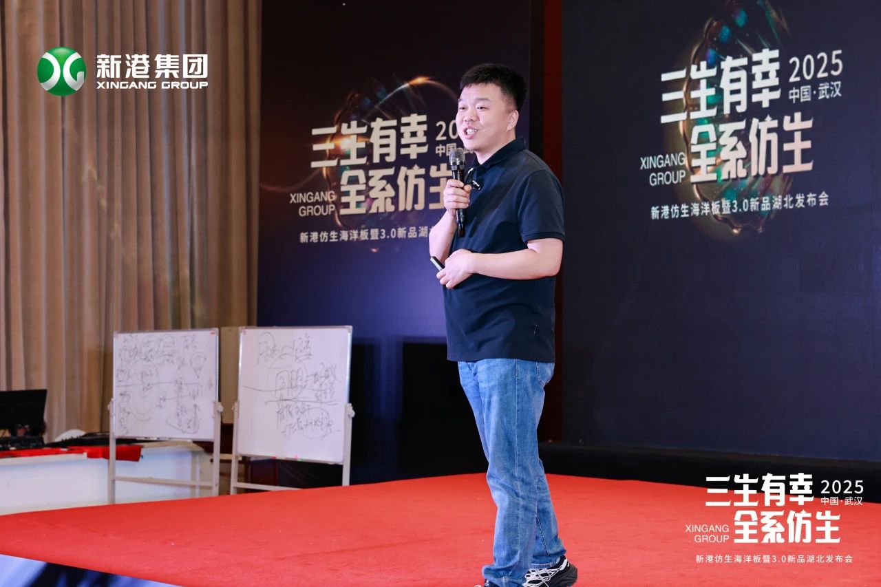 4月的品牌萬里行最后一站,我們來到了武漢,這座充滿活力與英雄氣息的城市。新港仿生海洋板、全新3.0花色再次閃耀登場。此次會議中,主題演講環節成為全場關注的焦點。新港集團副總裁姜總、首席產品顧問劉若一老師以及系統柜阿穆特老張依次上臺,帶來了精彩且富有深度的分享。