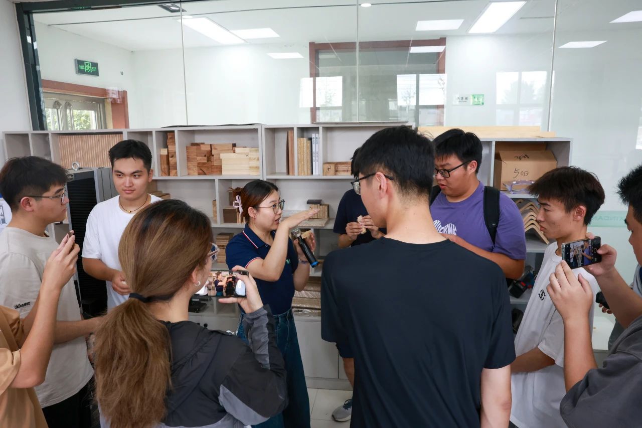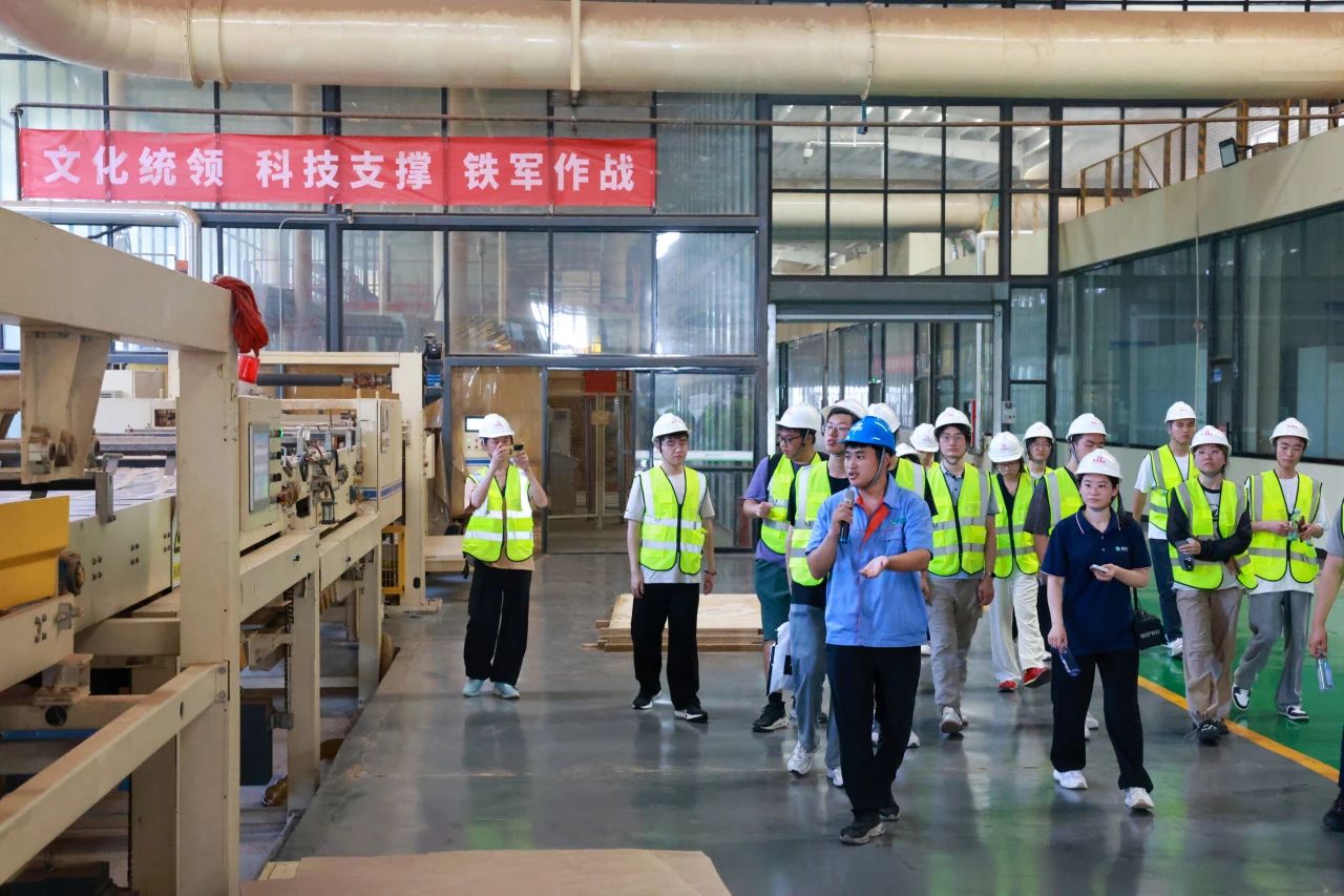 生產(chǎn)車間是產(chǎn)業(yè)實力的直觀體現(xiàn)。實踐團深入年產(chǎn)30萬立方米超強刨花板生產(chǎn)線、18 萬立方米超薄纖維板生產(chǎn)線及臨沂本地家具、地板企業(yè),智能化設(shè)備高速運轉(zhuǎn),原材料經(jīng)精準(zhǔn)加工轉(zhuǎn)化為優(yōu)質(zhì)板材,實現(xiàn)超高的環(huán)保標(biāo)準(zhǔn),無不展現(xiàn)著企業(yè)精細化管理的硬核實力。同學(xué)們親眼見證“中國制造”向“中國智造”的跨越,對林業(yè)產(chǎn)業(yè)的現(xiàn)代化水平有了全新認識。