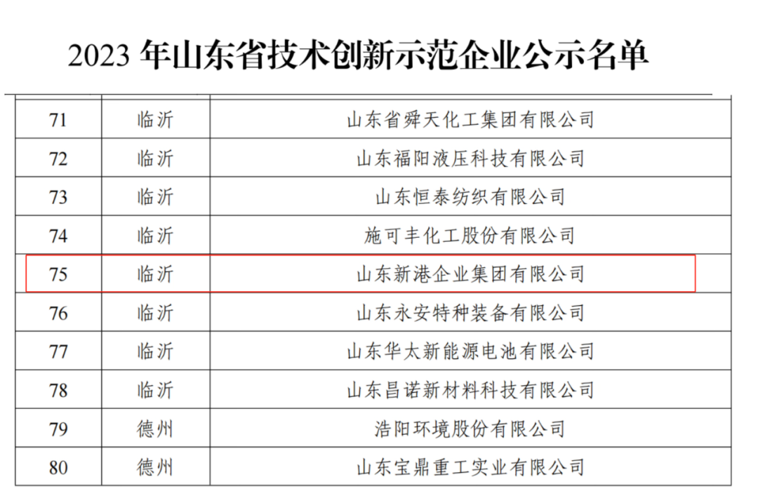 10月24日,山東省工業和信息化廳公示了2023年度山東省技術創新示范企業名單,新港集團以核心技術實力成功入選。