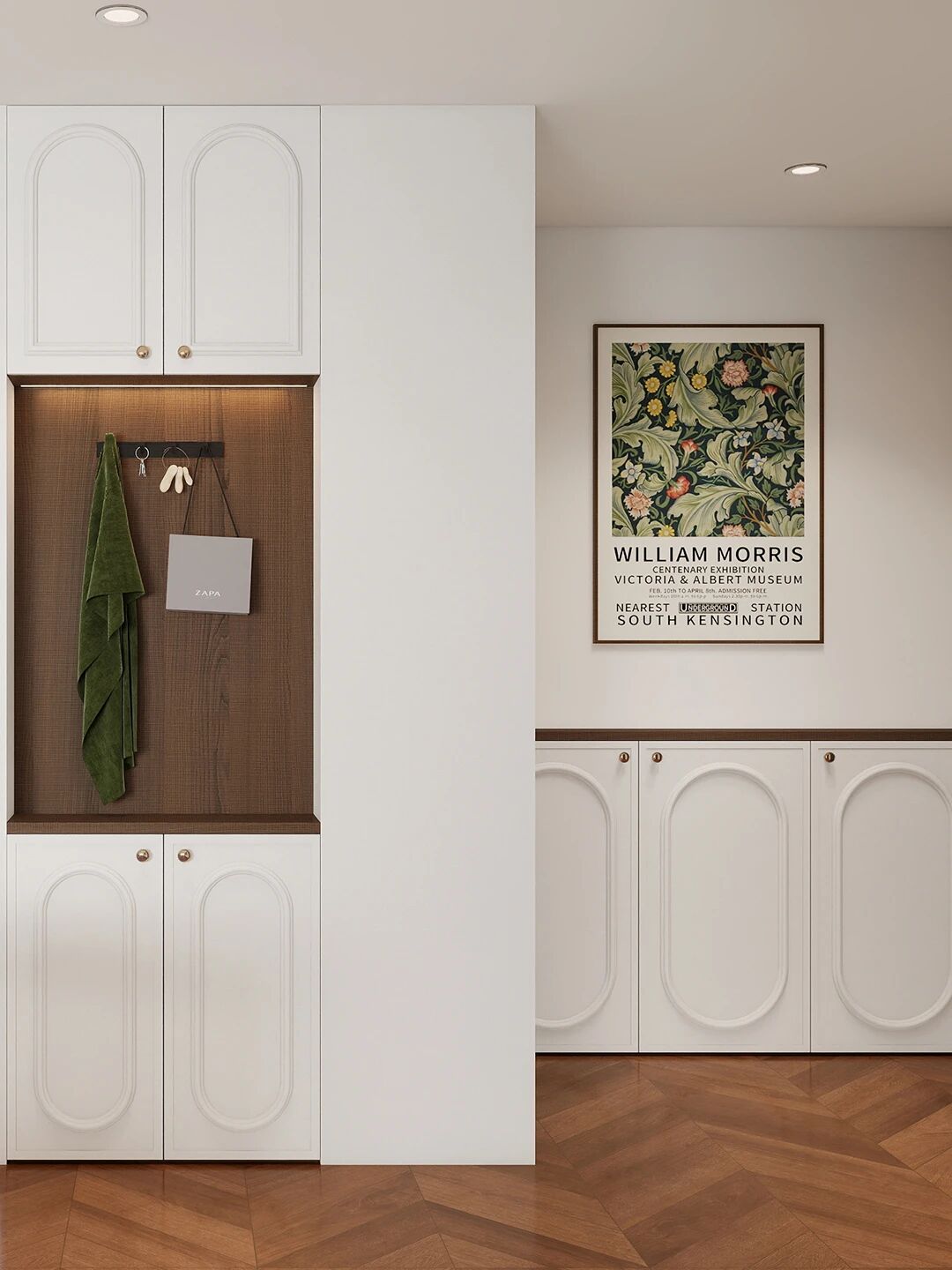 雅白在此場景中并非主角,它在餐邊柜、櫥柜、玄關柜的細節中靜靜營造空間的呼吸感。